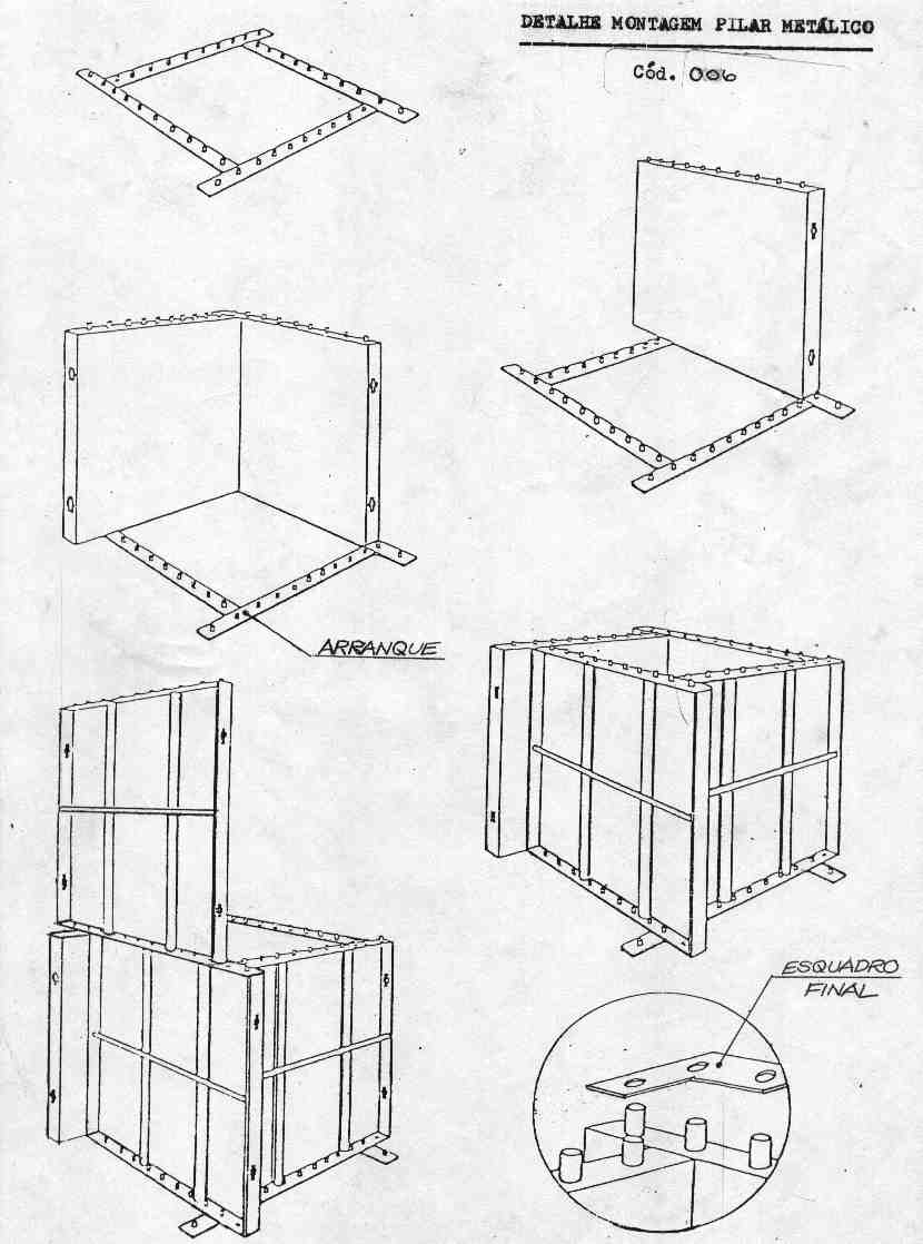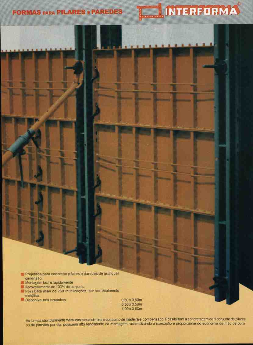 Formas Metálicas Moduladas para Pilares e Paredes permitem montagens com variação de 5 em 5 cm.